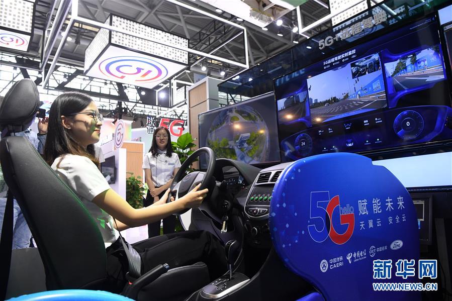 8月26日,工作人员在智博会上演示“5G+远程驾驶”技术。新华社记者 唐奕 摄
