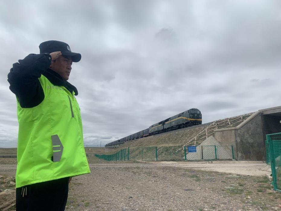 护路队员昂旺益西告诉记者,每当火车经过向火车敬礼的时候,自己内心会有一种自豪感油然而生。人民网 宋晨 摄