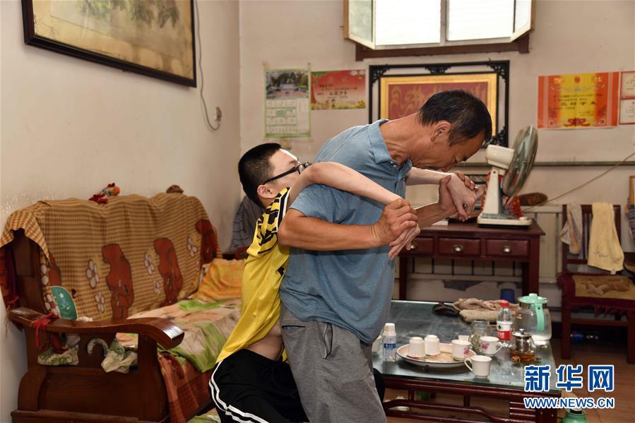 18岁的张连川把胳膊搭在父亲张玉坤的肩上。父亲攥住儿子的双臂,稍一躬身直起腰,便熟练地将张连川背在身后。父亲将儿子的双手挽在胸前、轻轻掂了掂背,随后一步一挪走下台阶、迈出了院门……