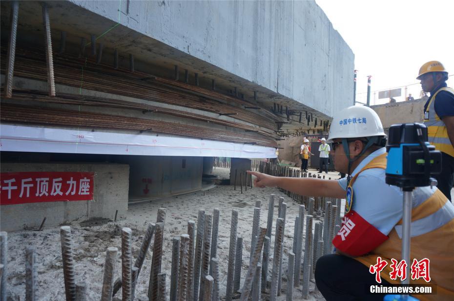 施工人员检测转体桥旋转角度。韩章云 摄