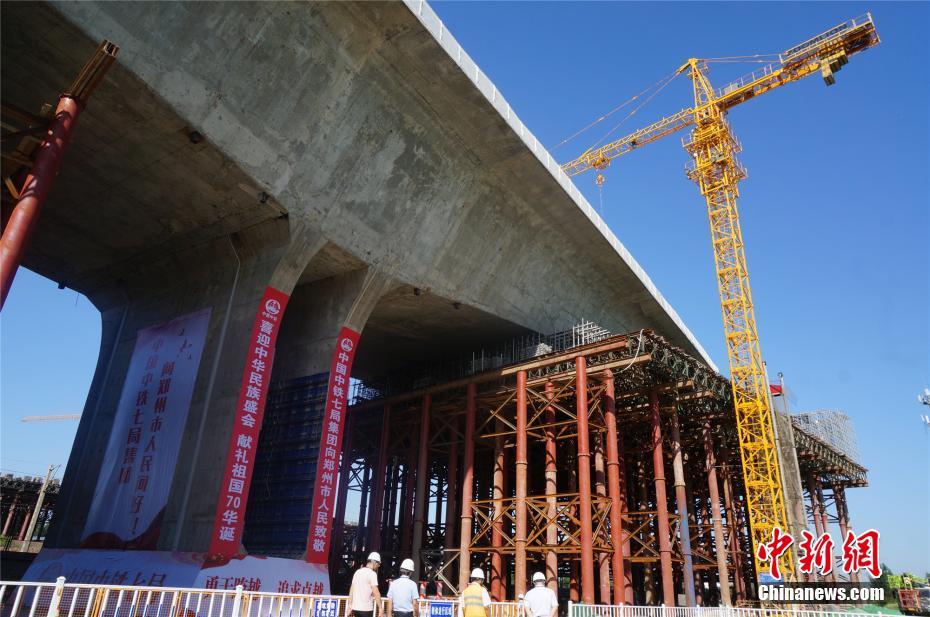单侧重达3万吨的郑州大河路转体桥开始进行另一侧T构转体。王威 摄