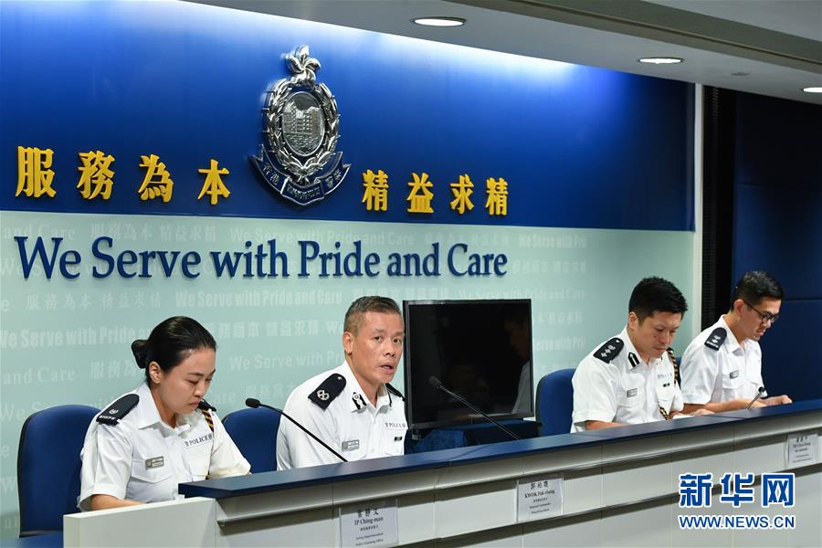 8月29日,特区政府警务处港岛总区指挥官郭柏聪(左二)参加警方新闻发布会。 新华社记者 刘大伟 摄