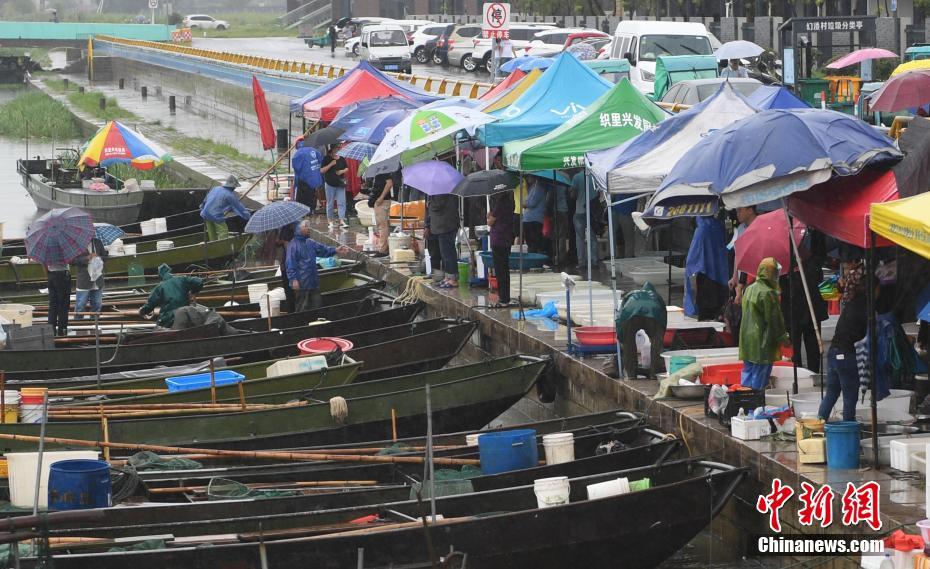 9月1日,浙江湖州,太湖边一鱼市迎来采购者。当日,在禁渔数月之后,太湖迎来开渔季,渔民们纷纷进湖捕捞作业。中新社记者 王刚 摄