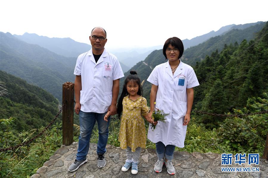 8月31日,张清语和爸妈在璜尖乡的一座山顶上。新华社记者刘军喜摄