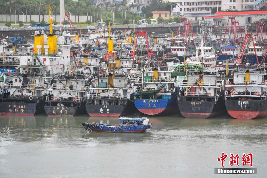 9月2日,在海口新港码头停靠着众多回港避风的船只。南海热带低压的中心已于当日10时40分前后在海南省万宁市万城镇沿海登陆,登陆时中心附近最大风力7级(15米/秒),中心最低气压为995百帕。 中新社记者 骆云飞 摄