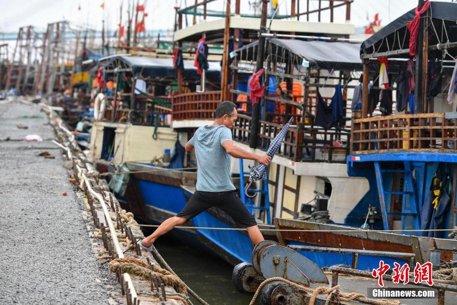 9月2日,在海口新港码头停靠着众多回港避风的船只。南海热带低压的中心已于当日10时40分前后在海南省万宁市万城镇沿海登陆,登陆时中心附近最大风力7级(15米/秒),中心最低气压为995百帕。 中新社记者 骆云飞 摄