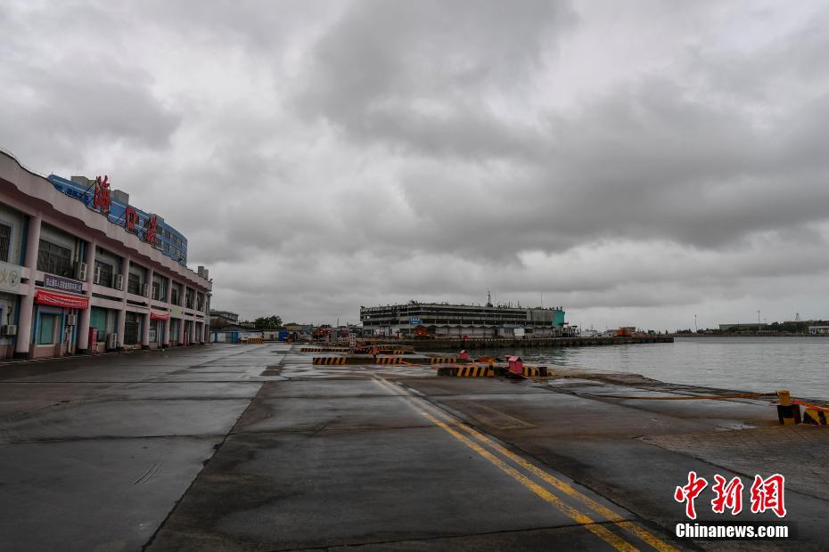 9月2日,南海热带低压的中心已在海南省万宁市万城镇沿海登陆,登陆时中心附近最大风力7级(15米/秒),中心最低气压为995百帕。受该南海热带低压影响,琼州海峡于1日23:00时起停航,海南进出岛旅客列车同时停运。图为海口港客运站码头空无一船,客滚船已全部进入避风港避风。 中新社记者 骆云飞 摄