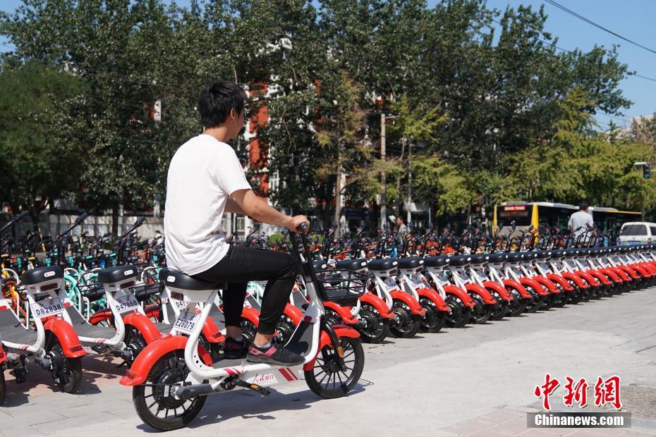 9月2日,北京人民日报社西门,用户骑公务电动车出行。北京市首批专门用于公务出行的电动自行车日前正式投用。公务电动自行车车身红白相间,统一配备了车牌,全部符合新国标,并为骑行人购买了保险。它仅面向机关事业单位公务出行人群,解决10公里以内的出行难题。中新社记者 张兴龙 摄