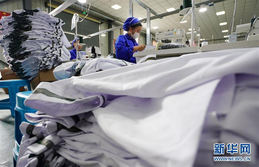 8月29日,在甘肃省临夏回族自治州东乡族自治县达板镇一扶贫车间,一名工人在车间制作衣服。新华社记者 陈君清 摄