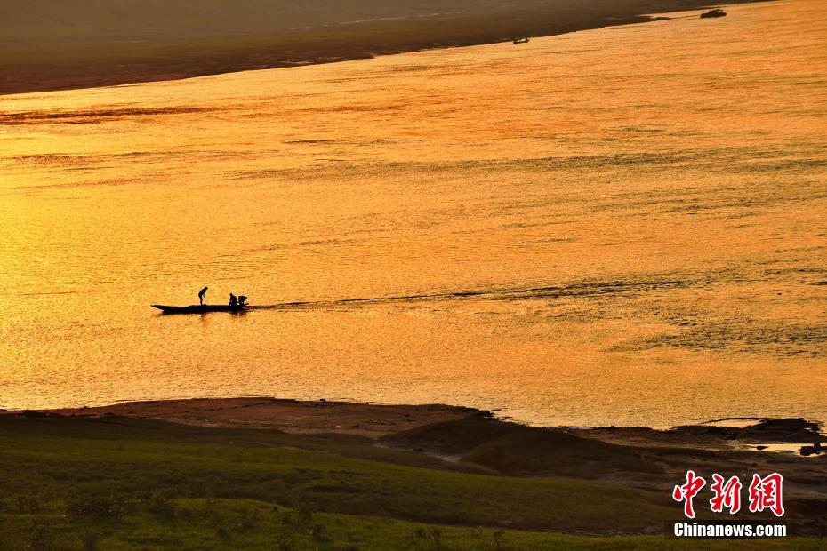 近日,长江三峡库区重庆涪陵红酒小镇段初秋时节风景美如画。图为黄昏时分打渔人划船在江中。石伟 摄