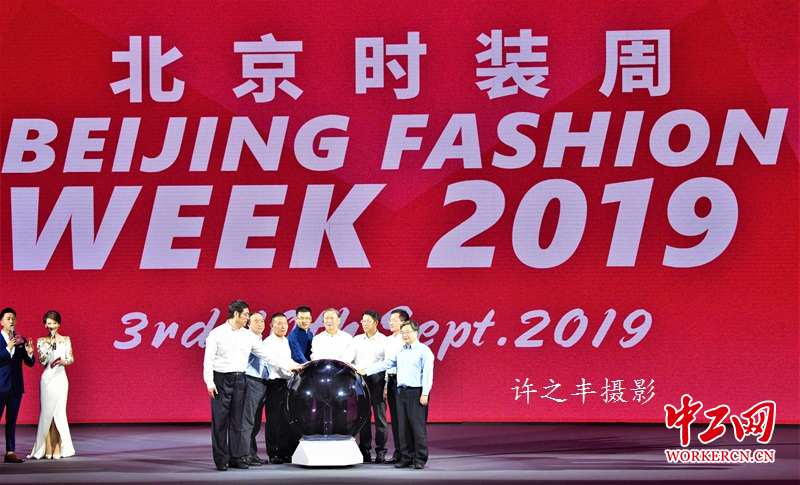 2019年9月3日晚,北京时装周在国家游泳中心水立方开幕。“迹往未来”为主题的雪莲2020/2021秋冬羊绒针织服装流行趋势发布拉开本届时装周序幕。羊绒针织服装时尚优雅中流露独特中国气质,大气筒约中蕴含着沉静內致的东方气韵,使观众除了欣赏到服装设计的精道之处,感受到秋冬羊绒时尚生活的流行新趋势。图为北京时装周开幕式现场与首场时装发布会。工人日报-中工网许之丰摄影报道