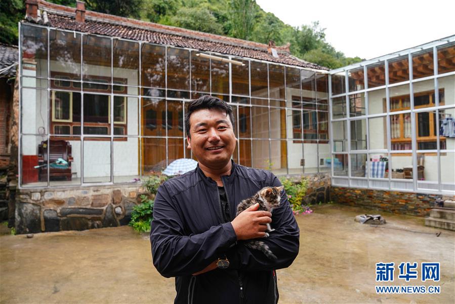 在甘肃省甘南藏族自治州夏河县曲奥乡香告村,村民卓玛杰新盖了玻璃房,他的“藏家乐”预计明年开业(8月28日摄)。