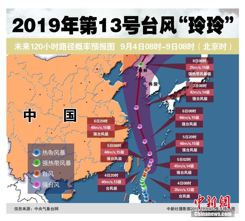 9月4日,中央气象台发布台风黄色预警:2019年第13号台风“玲玲”已于9月3日晚上由强热带风暴级加强为台风级,将于5日下午到晚上进入东海南部海域,强度逐渐增强。中新社记者 张九玲 摄