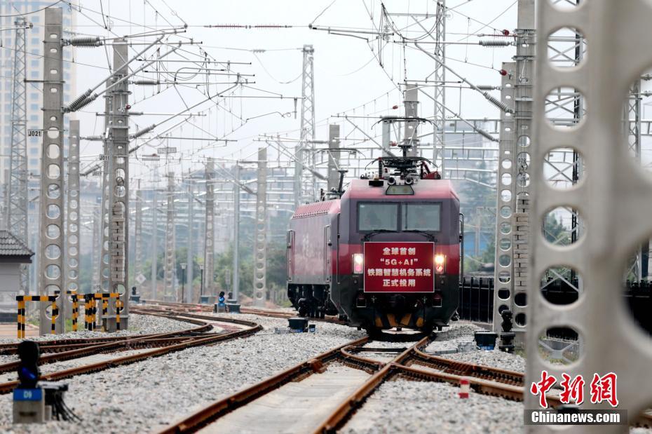9月4日,首台搭载5G设备的402号“和谐HXD3D”型大功率电力机车驶入西安机务段机车整备场,在不到90秒的时间内15.6GB的机车视频数据自动转储完成,标志着由中国铁路西安局集团有限公司联合华为技术有限公司合作开发的“5G+AI智慧机务系统”正式投用。这是在全球范围内首次在铁路机车上应用5G技术,对提升机车数据转储效率,加快铁路科技创新发展具有重要意义。中新社记者 张远 摄