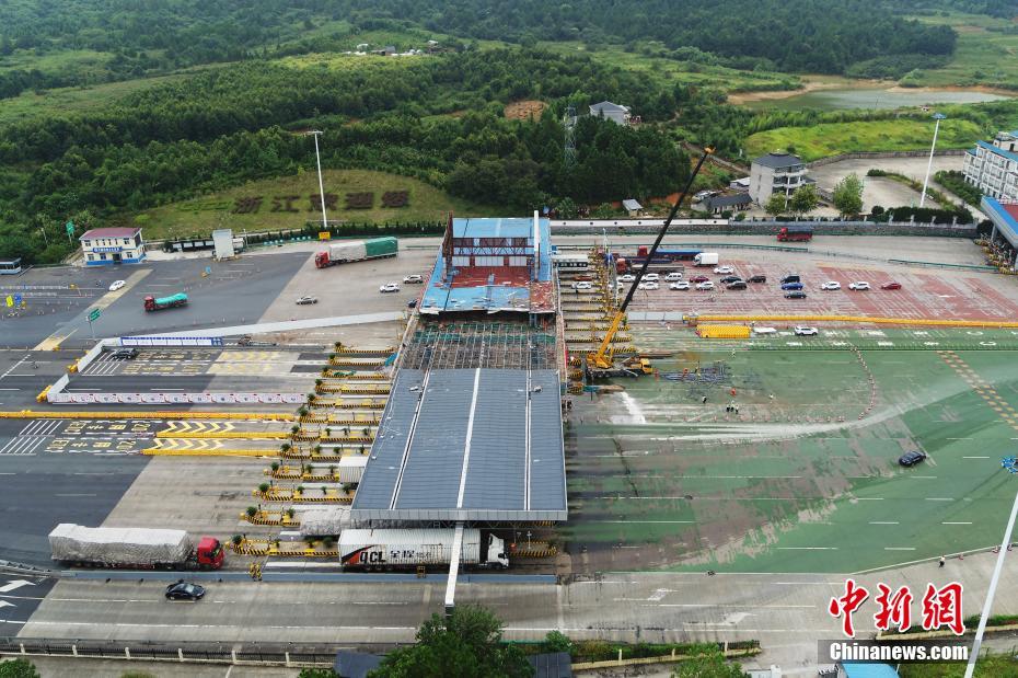 9月4日,位于G60沪昆高速上的赣浙省界梨园收费站正式动工拆除。该收费站位于江西省上饶市玉山境内,是该省开始拆除的第一座省界收费站,同时也是江西最大的一座收费站。该收费站于2002年12月31日建成通车,双向共有35个车道,是往返浙江、上海等地的必经之路,曾经单日出省最高车流量突破5万辆。目前正在拆除的是高速公路上的主线部分,全部工程预计年底完工。 中新社记者 夏睿德 摄