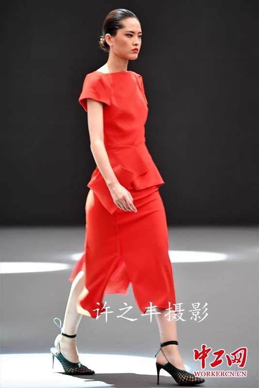 2019年9月4日,北京时装周,一场罗兰·穆雷品牌时装绣出秋冬时装新时尚,简单设计风格,精准合身的平面剪裁,诠释女性化浪漫的流行趋势,并融入复古型廓之线条。工人日报-中工网许之丰摄影报道