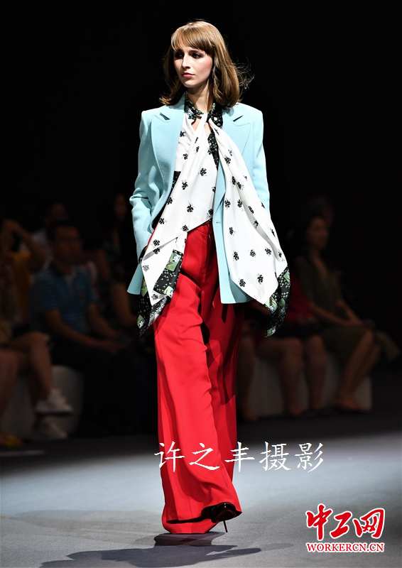 2019年9月4日,北京时装周,一场罗兰·穆雷品牌时装绣出秋冬时装新时尚,简单设计风格,精准合身的平面剪裁,诠释女性化浪漫的流行趋势,并融入复古型廓之线条。工人日报-中工网许之丰摄影报道