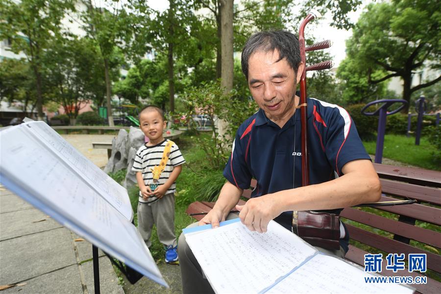 9月5日,杨福根在社区花园内练习二胡。他是社区民乐队成员,这个二胡是女儿网购给他的父亲节礼物,鼓励他更多地参加社区活动。新华社记者翁忻旸摄