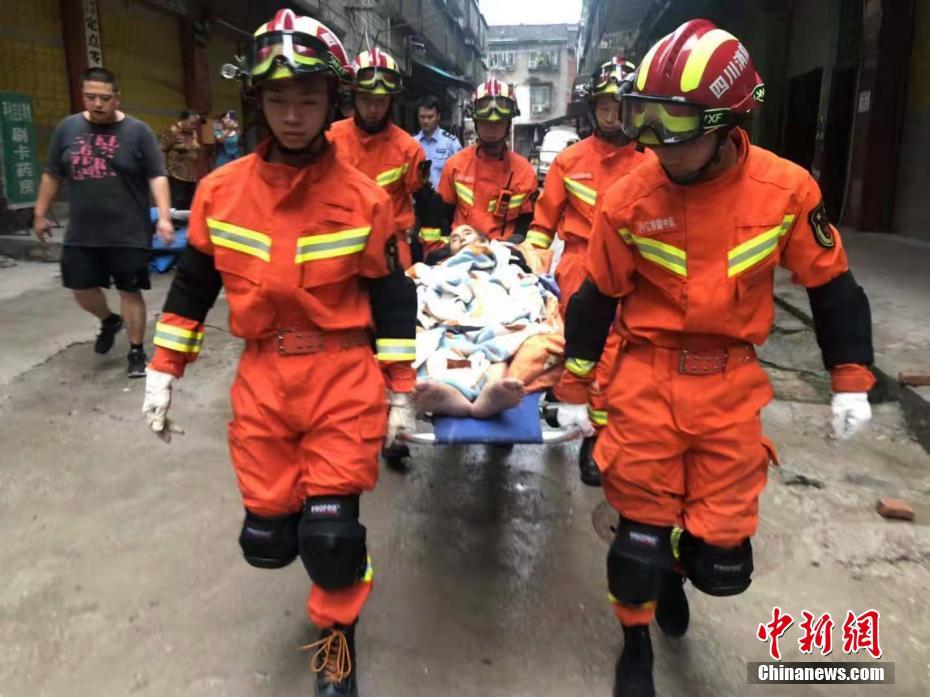 9月8日,四川内江威远县境内先后发生3.0级、5.4级、4.3级地震,地震已致1人死亡、29人受伤,17间房屋倒塌,215间房屋轻微受损。地震发生后,四川省地震局以及消防救援力量迅速赴震区开展排查、救援工作。目前,灾情核查以及民众转移安置等工作正在有序展开。图为消防救援人员在震区转移一名患病的老人。自贡消防 供图