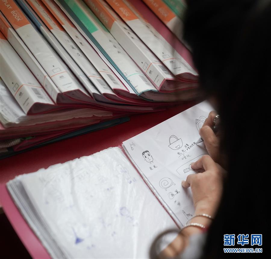 李溶溶为听障宝宝设计康复训练计划,每个宝宝的康复课程都是一对一定制的(8月22日摄)。新华社记者 程敏 摄