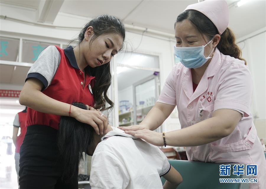 一名听障宝宝病了,李溶溶带她到诊所看病(8月22日摄)。新华社记者 程敏 摄