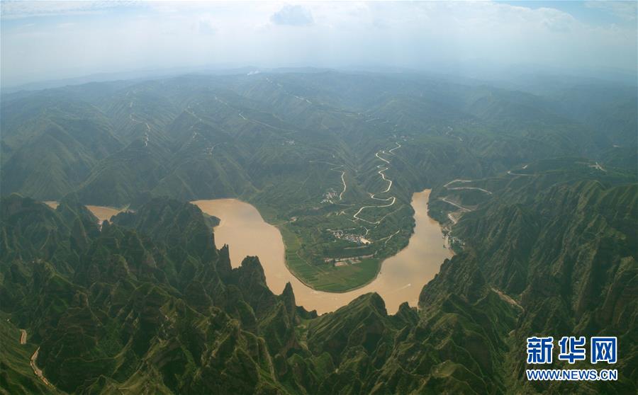 黄河从著名的炳灵寺石窟附近流过(8月27日无人机拍摄)。新华社记者 刘诗平 摄
