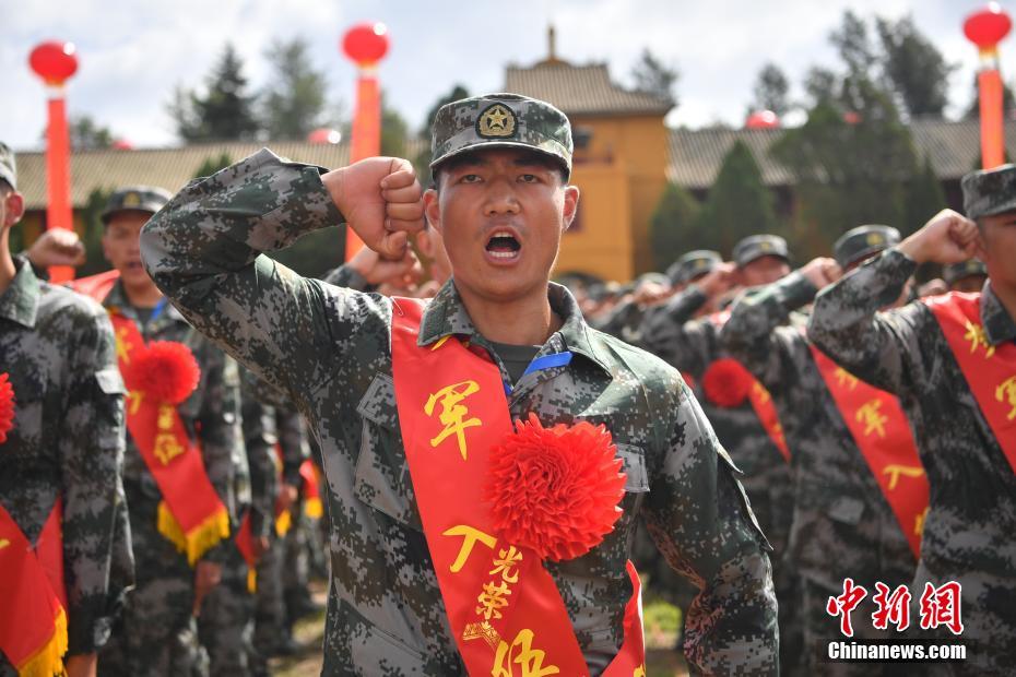 9月10日,新兵宣誓。当日,2019年度云南省新兵出征仪式在位于昆明市的云南陆军讲武堂举行。1300名新兵代表全省2019年应征入伍青年受领入伍命令,踏上军旅征程。 中新社记者 刘冉阳 摄