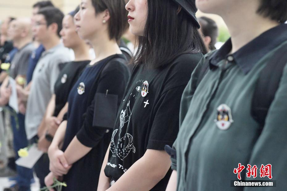 9月10日,前来悼念的人们胸前佩戴着一枚美影厂准备的“黑猫警长”徽章。当日,著名美术片艺术家、动画片《黑猫警长》导演戴铁郎追悼仪式在上海举行。黑猫警长与白猫班长分列遗像两侧,白鸽探长与“一只耳”在追悼厅外为“戴爷爷”站起“最后一班岗”。戴铁郎于9月4日因病去世,享年89岁。 中新社记者 申海 摄