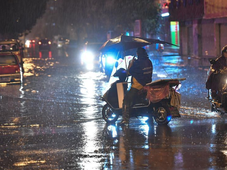 图为新华联街区为老师“亮灯”。 李隽 摄