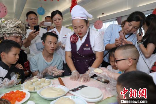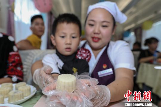 9月11日,在成都铁路局集团公司贵阳客运段广州车队贵阳开往广州的K842次列车餐车和贵阳北开往温州南的G2308次列车上,乘务员与旅客一起,体验制作月饼等传统民俗活动,感受团圆氛围,共迎中秋佳节。