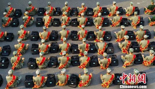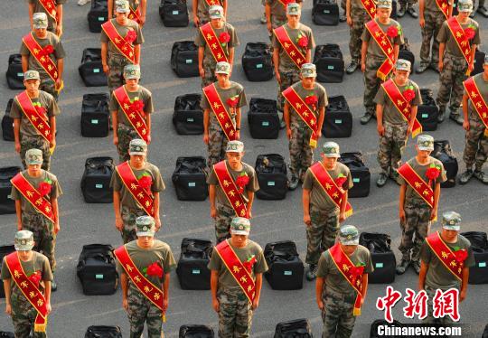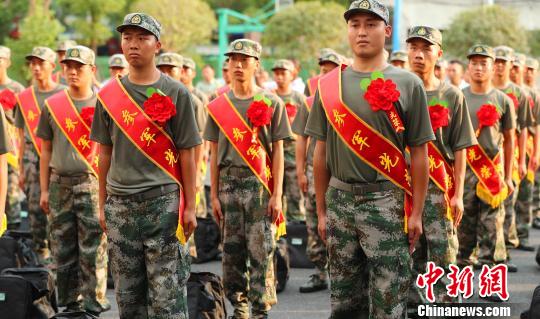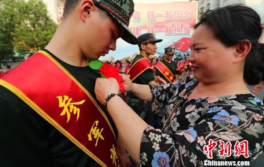 9月11日,江西省吉安市泰和县举行2019年度新兵欢送大会,亲朋好友前来欢送。欢送仪式上,新兵精神抖擞,胸戴红花,在亲人的欢送祝福下,投身军营建功立业,奔赴边疆保家卫国。邓和平 摄