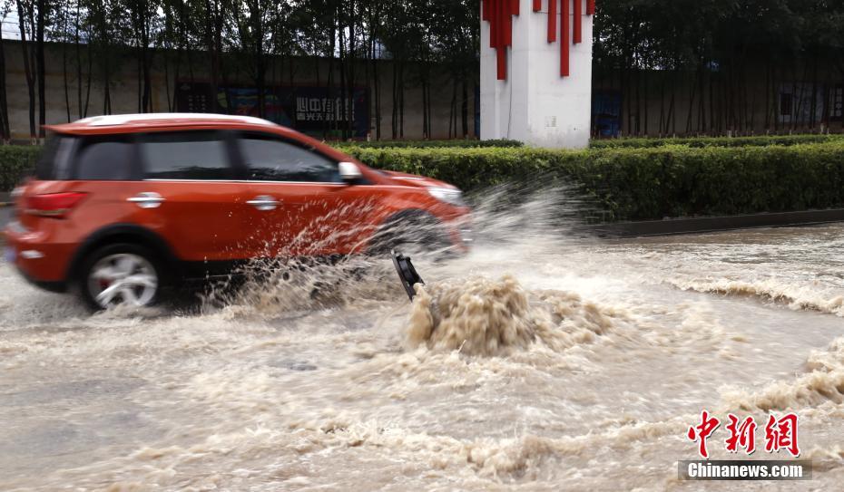 9月12日,青海省西宁市部分道路积水严重。当天,青海省多地降下大雨,西宁市气象台发布暴雨蓝色预警。中新社记者 马铭言 摄