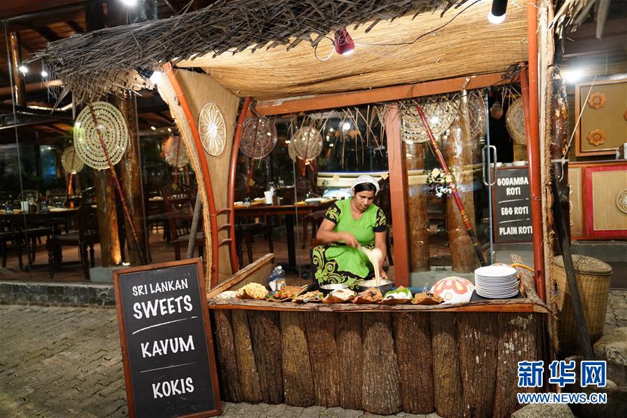9月3日,在斯里兰卡科伦坡,餐厅甜点师在制作油糕。新华社记者唐璐摄