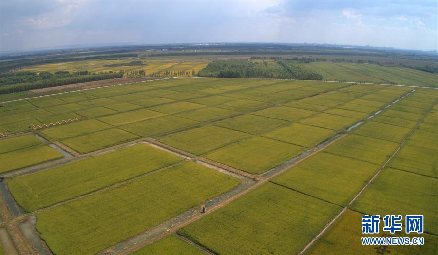 黄河水灌溉的青铜峡市叶盛镇地三村农田(9月1日无人机拍摄)。 新华社记者 刘诗平 摄