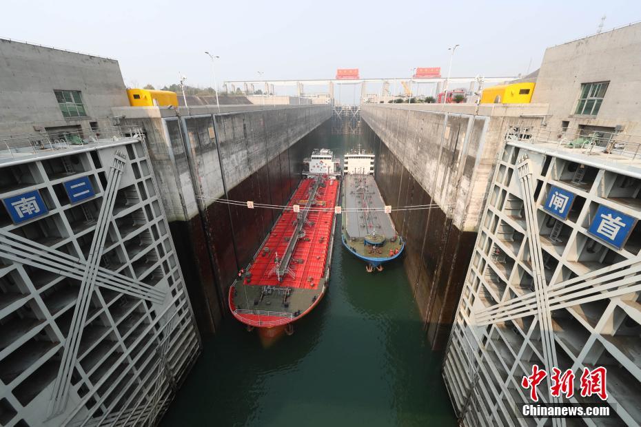 据统计,三峡船闸年实际运行天数超过350天(设计值335天),年通航率均保持在94%—98%之间(设计水平84.1%),三峡船闸24小时不间断运行(设计值22小时),船闸实际一次过闸平均载重吨位达到1.77万吨(设计1.02万吨);过闸船型标准化率已经达到了85%,闸室面积利用率由55%提高到70%,过闸船舶平均载重吨位从蓄水前的685吨提高到4236吨。过闸船舶平均单位能耗从蓄水前的7.6千克/千吨公里下降到1.9千克/千吨公里,过闸船舶吨公里成本从蓄水前的0.056元下降到0.015元,水运比较优势进一步凸显。图为船舶有序通过三峡船闸。峡通航管理局 供图