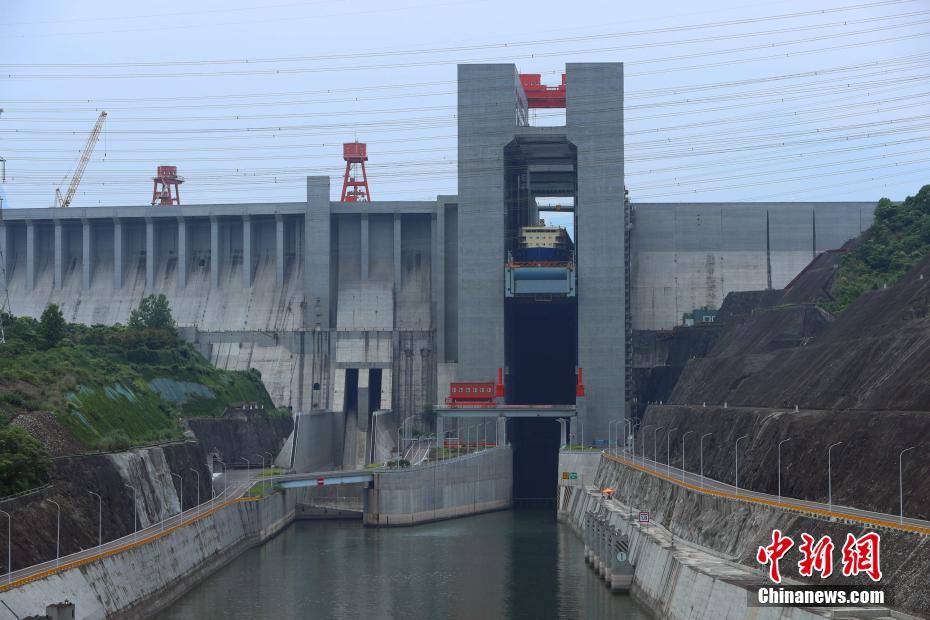 过闸船舶平均单位能耗从蓄水前的7.6千克/千吨公里下降到1.9千克/千吨公里,过闸船舶吨公里成本从蓄水前的0.056元下降到0.015元,水运比较优势进一步凸显。图为三峡升船机。峡通航管理局 供图