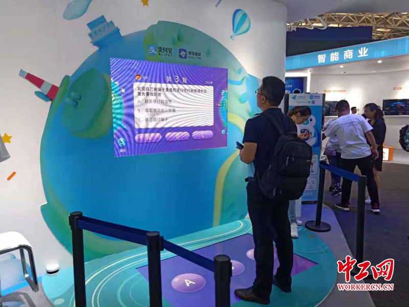 图为民众体验网络安全博览会阿里巴巴展区的“答答星球”线下答题活动。中工网记者张舒雯摄
