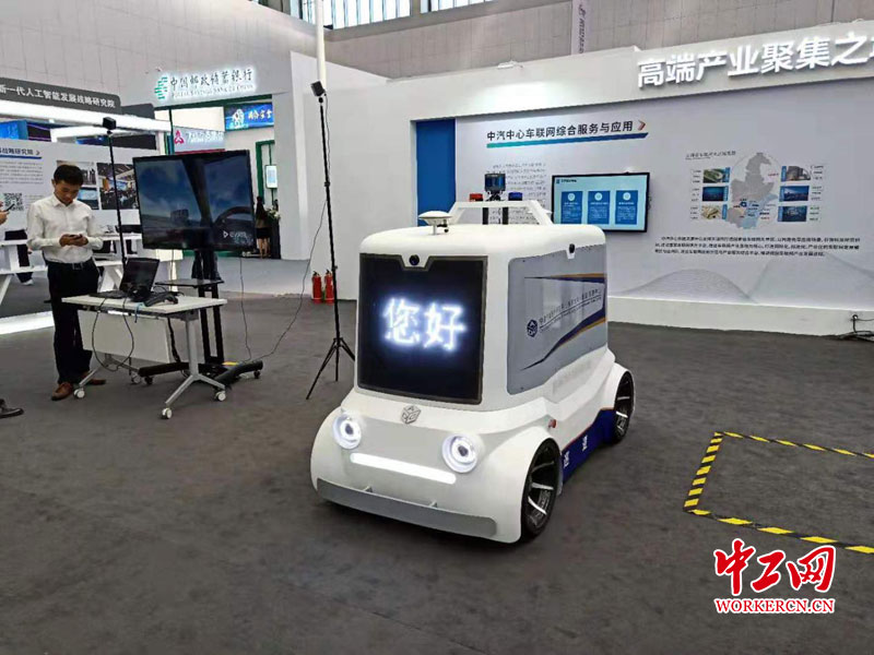 图为中国汽车技术研究中心有限公司展出的无人巡逻车。中工网记者张舒雯摄