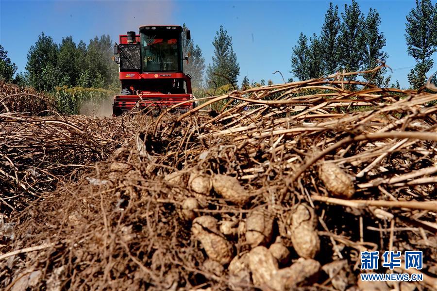 9月18日,河北省滦州市东安各庄镇的农民使用机械设备收获花生。 近期,河北省各地的秋粮等农作物陆续成熟,广大农民抢抓农时适时收获,田间地头一派繁忙景象。 新华社记者 杨世尧 摄