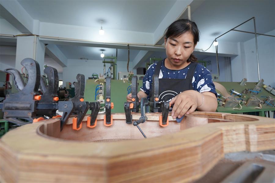 9月18日,斐波那契吉他工作室的员工在制作吉他。 在河北省内丘县工业园区,有间名为斐波那契的吉他工作室,40岁的制琴师王志远,从事吉他制作已有10余年。 2013年,王志远在上海成立斐波那契吉他工作室,一开始,他一个人手工制作吉他,完成一把要6到8个月。几年打拼下来,他积累了大量经验和固定的客户群,但限于产能,工作室发展陷入“瓶颈”。 2018年,王志远带着积蓄和技术返乡创业,在内丘县工业园区工作人员的帮助下,他找好场地,买下机器设备,雇佣人员进行培训……一年来,工作室发展步入正轨,吉他的生产周期缩短一半。 现在,王志远开始谋划未来:把团队制琴升级成流水线制琴,在自己的家乡进一步发展他的吉他事业。 新华社记者 牟宇 摄