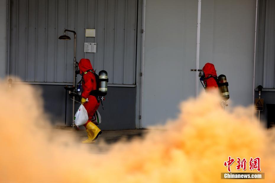 9月19日,湖北省咸宁市举行应急救援综合拉动演练。演练设定当地一厂区内1号成品仓库有大量浓烟,并有人员被困。现场,消防员利用沙袋对灾害事故现场核心区域进行筑堤堵截。同时,指挥部调集卫健、交通、环保、城管、气象、供电、电信等部门应急救援力量和应急装备到场增援,协同作战。此次演练旨在检验咸宁应急救援综合协调能力、科学决策能力、迅速反应能力和信息化集成能力,提升应对重大突发事件处置能力。 朱燕林 摄