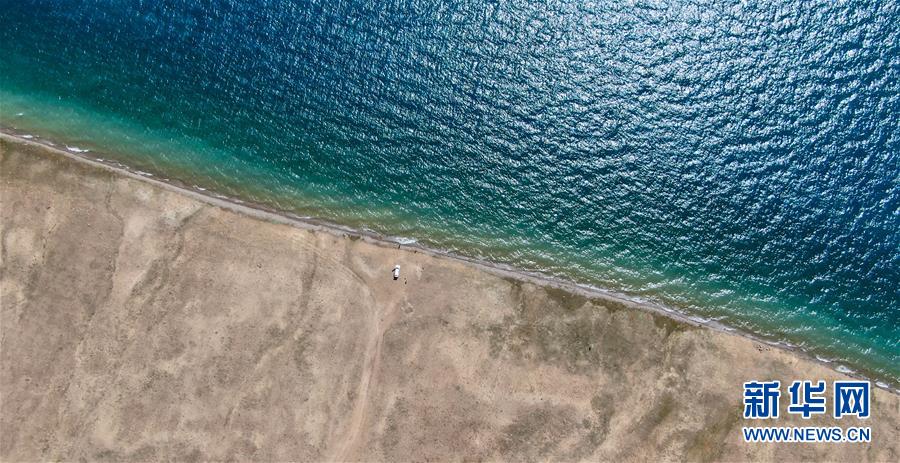 这是普姆雍错湖边一景(9月19日无人机拍摄)。 普姆雍错位于西藏山南市浪卡子县境内,海拔五千多米,在周围雪山融水的滋润和阳光的照耀下,美若少女。 新华社记者 晋美多吉 摄