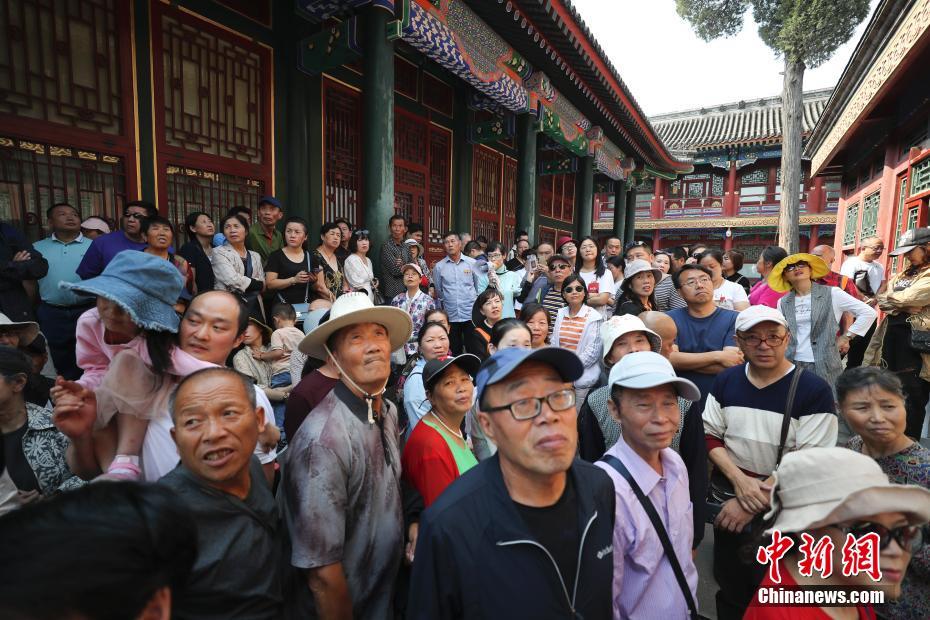 9月20日,北京恭王府博物馆举行新闻发布会介绍2019年国庆假期全网售票及限流情况。为最大限度地保护古建安全和游客安全,改善参观秩序,恭王府博物馆决定在2019年国庆期间实行全网售票及限流措施。10月2日至10月7日恭王府博物馆将取消现场售票窗口,实行全网售票,每天售票限额3.2万张,提前10天预售。图为当日参观恭王府博物馆的游客。中新社记者 杜洋 摄