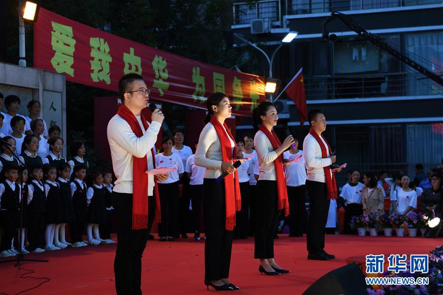 9月22日,人们在活动现场表演节目。 当日,山西省运城市黄金水岸社区举行迎国庆活动,人们通过文艺表演等形式,表达对祖国的祝福。 新华社记者 杨晨光 摄