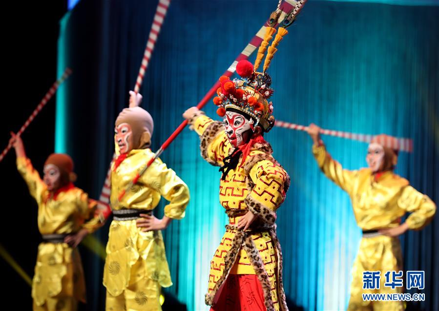 9月24日,上海市奉贤区肖塘小学的学生在表演京剧。 当日,“颂家乡美丽、赞祖国强大”长三角地区学校少年宫优秀文艺节目汇演在上海大宁剧院举行。 新华社记者 刘颖 摄