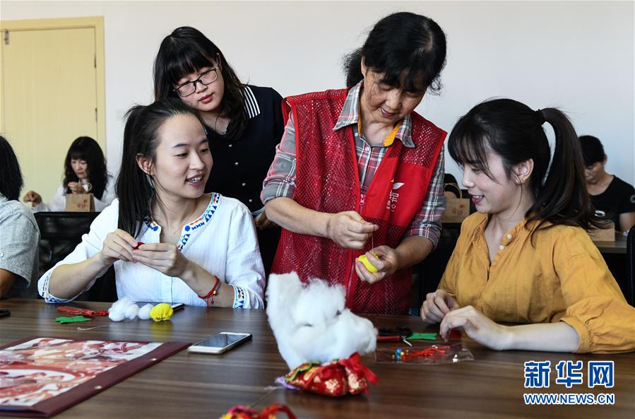 9月24日,志愿者(前右二)在指导女职工绣制心形荷包。 当日,浙江省慈溪市钱海军志愿服务中心的志愿者为当地企业的女职工开设迎国庆“非遗”制作课堂,传授剪纸和刺绣等非遗技艺。女职工们制作出精美的手工艺品,为国庆献上自己的一份心意。 新华社记者 徐昱 摄