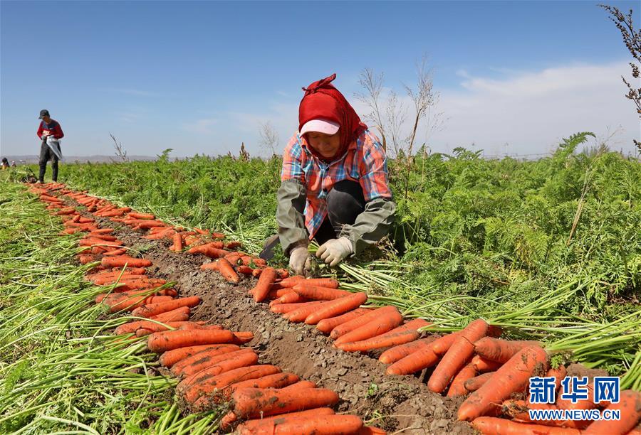 9月24日,张家口市塞北管理区的工人在收获胡萝卜。 近日,河北省张家口市塞北管理区马铃薯、胡萝卜进入收获期,工人抢抓农时进行收获。据介绍,塞北管理区今年播种马铃薯近6万亩、胡萝卜1万余亩,预计两种作物产量达27万吨。 新华社记者 杨世尧 摄