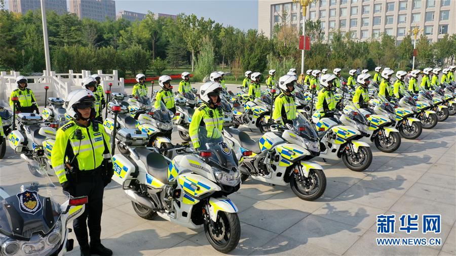 9月27日拍摄的天津公安铁骑护卫机动队授旗仪式现场。 当日,天津公安铁骑护卫机动队授旗仪式在天津市公安局举行。 新华社记者 李然 摄