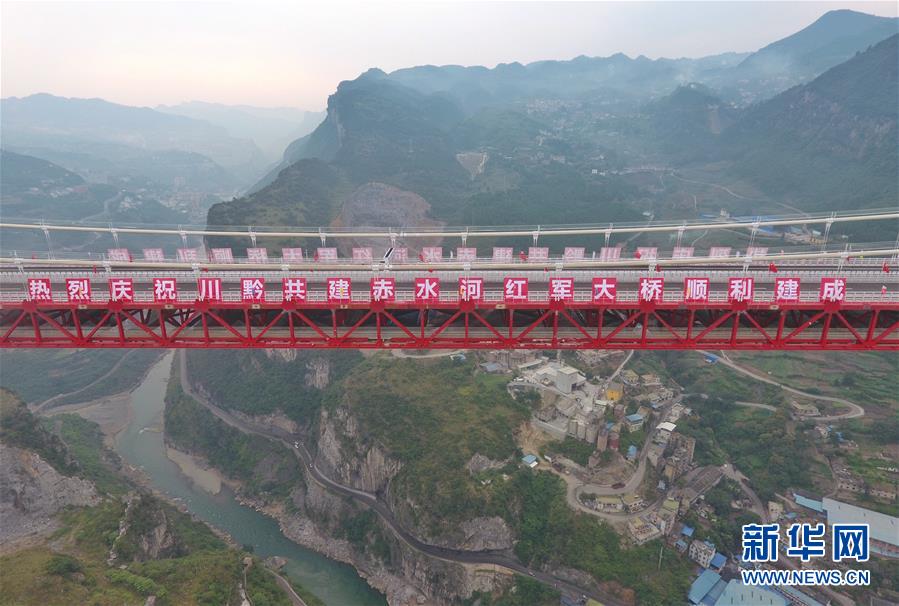 9月30日无人机拍摄的赤水河红军大桥。新华社记者刘坤摄