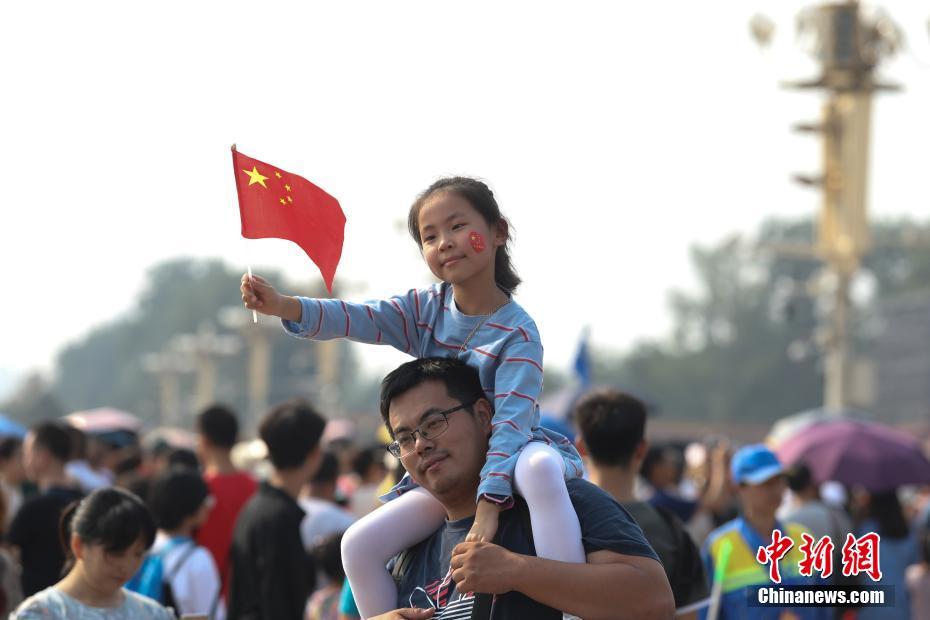 10月2日,国庆假期第二天,天安门成为旅游热门景点。图为在天安门前手持国旗的小游客。中新社记者 蒋启明 摄